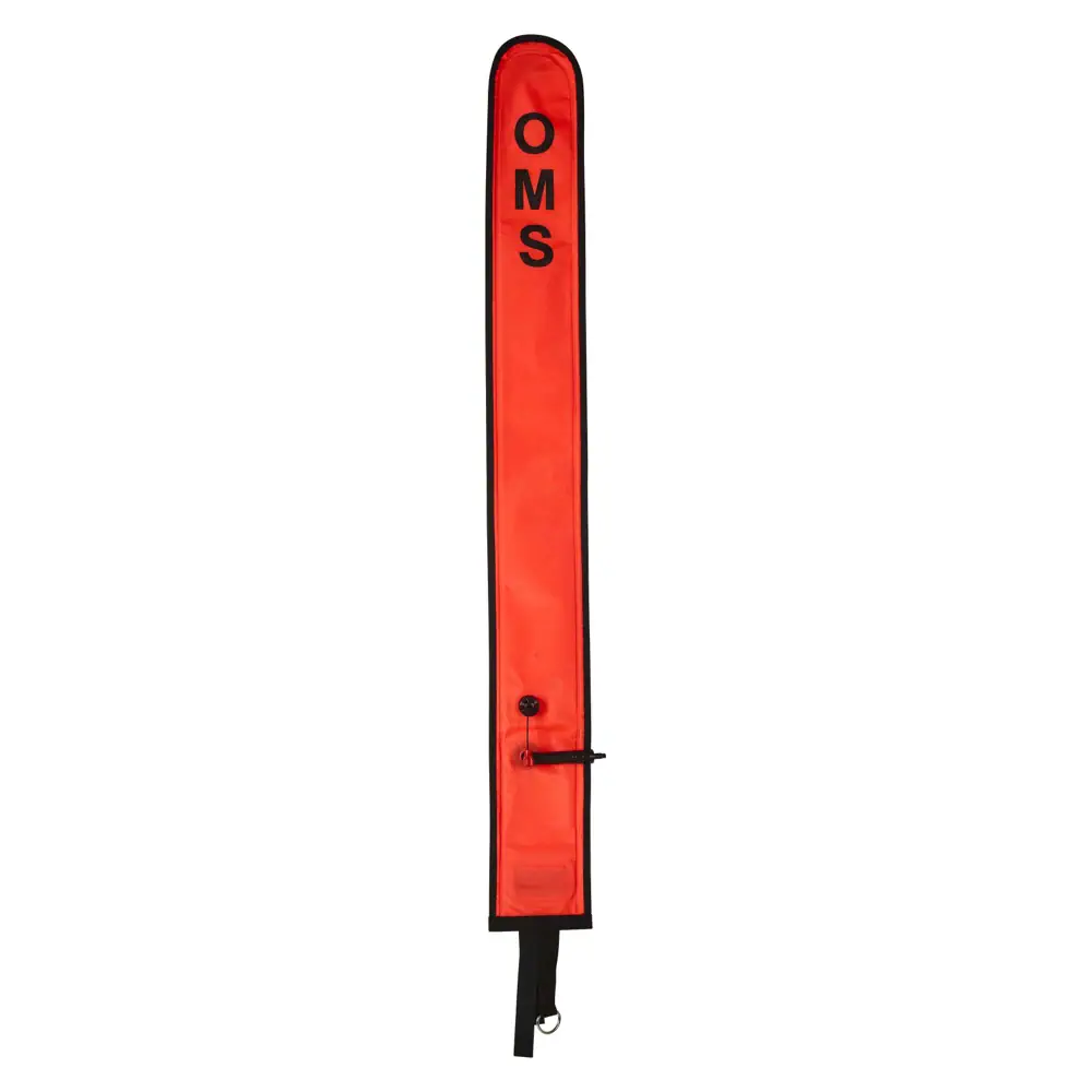The SMB HYBRID 3.3 from OMS is unique in the fact that it can be inflated in 3 ways; using an octopus at the opening on the bottom through a one way duck valve allowing air only in one direction, with the inflator valve by using your inflator / dry suit quick disconnect hose or by orally inflating with your mouth. Comes in orange, yellow or pink and is 1 meter long.