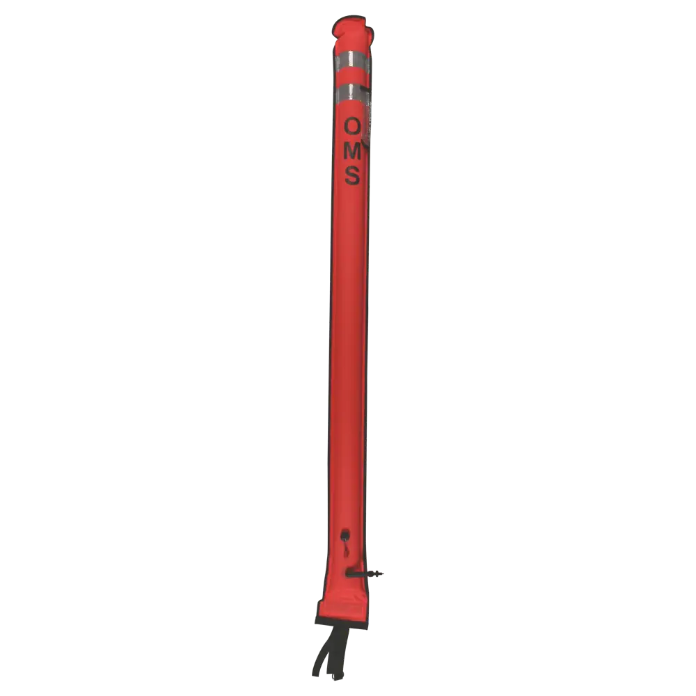 The SMB HYBRID 6.0 from OMS is unique in the fact that it can be inflated in 3 ways; using an octopus at the opening on the bottom through a one way duck valve allowing air only in one direction, with the inflator valve by using your inflator / dry suit quick disconnect hose or by orally inflating with your mouth. Comes in orange, yellow or pink and is 1.8 meters long.